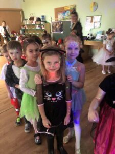 Karnawałowy bal przebierańców to najpewniej jedno z najważniejszych wydarzeń przedszkolnych. Karnawał to czas zabaw i balów, także dla najmłodszych. Kolorowe stroje, bajeczny wystrój i skoczna muzyka– w takiej atmosferze bawiły się dzieci podczas balu karnawałowego. Przedszkolaki z dumą prezentowały bajeczne stroje. Z wielką ochotą uczestniczyły  w tańcach, zabawach i konkursach. Największy zachwyt wywarł na dzieciach pokaz kolorowych świateł i baniek mydlanych. Bal umożliwił dzieciom i wychowawcom spędzenie czasu w miłej atmosferze.