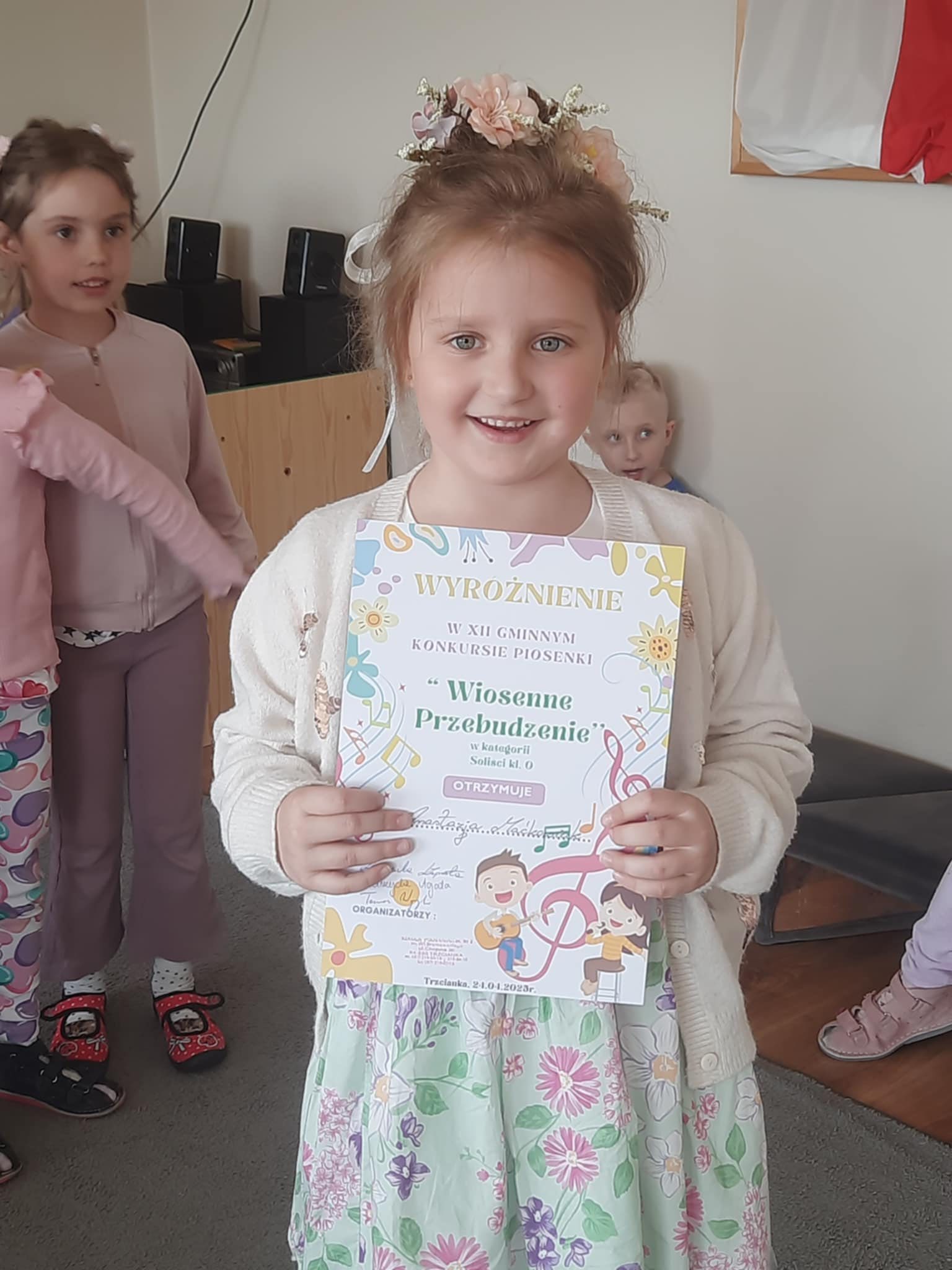 Dnia 24.04.2025 r. w Szkole Podstawowej Nr 2 w Trzciance odbyła się XII edycja  Gminnego Konkursu Piosenki „Wiosenne Przebudzenie”, w której do rywalizacji przystąpiły przedszkola oraz szkoły podstawowe klas I–III naszej gminy. Nasze przedszkole reprezentowała Anastazja Maćkowiak, która zdobyła wyróżnienie w kategorii soliści kl. „0”. Serdecznie gratulujemy!
